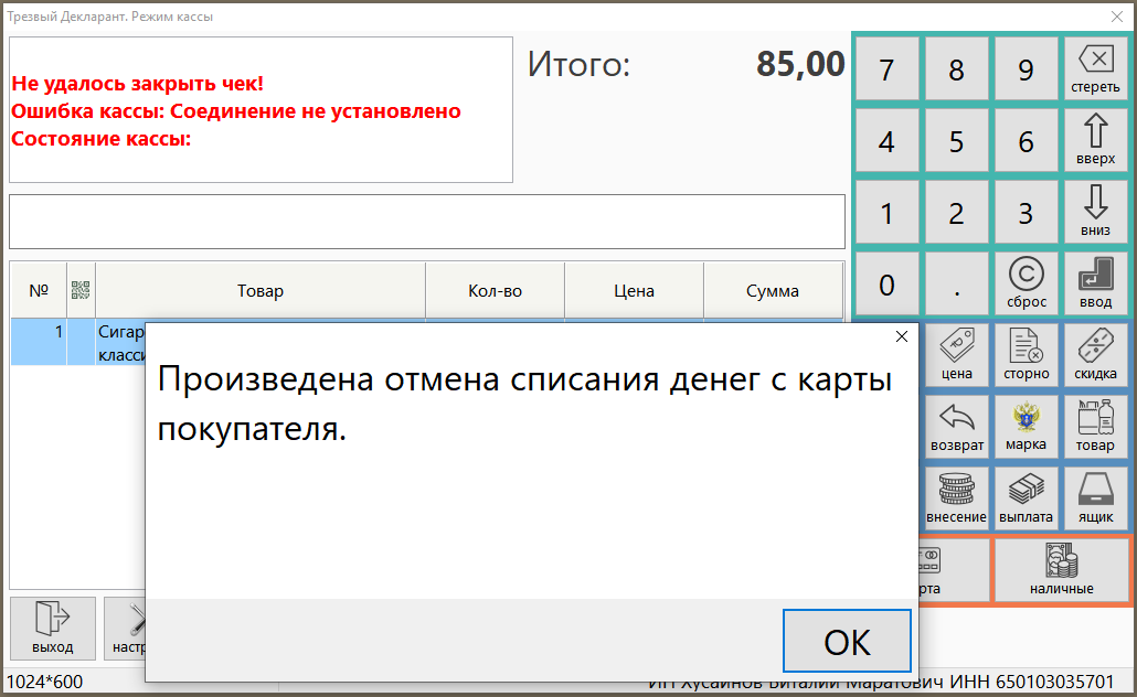 Если продажу не удалось зарегистрировать, автоматически произойдет возврат денег покупателю