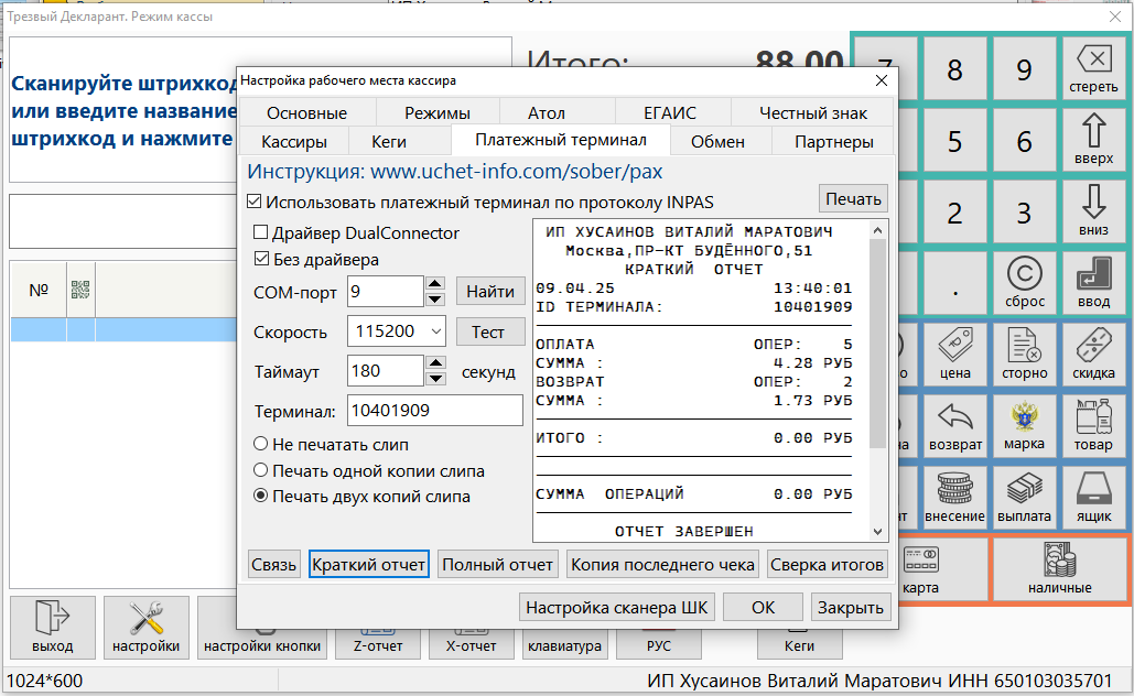 Если драйвер DualConnector не удалось установить, можно работать без драйвера, установив соответствующий флажок. Работы в программе в таком режиме ничем не отличается от работы с драйвером. После переключения режимов желательно перезагрузить компьютер и эквайринговый терминал.